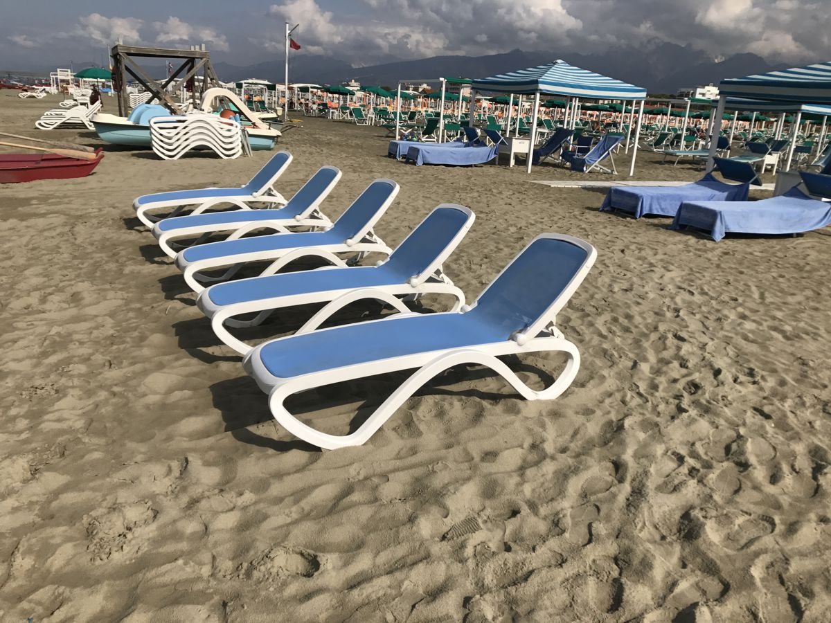Шезлонг Omega Blue, от производителя Nardi - это хорошо зарекомендовавший себя как на зарубежных, так и на российских пляжах, крепкий, прочный и надежный. Его универсальный дизайн, с продуманной обтекаемой формой, которая убережет гостей от травм, очень зарекомендовала себя на рынке. Натянутая ткань, в основной зоне использования - это специально разработанная ткань, устойчивая к выгорания, гниению и устойчива к грязи. Шезлонг разработанный специально для коммерческих целей, где высокая проходимость посетителей и с возможностью использования спинки в нескольких положениях. Этот шезлонг использовать решили в двух цветах, с синей тканью и с бежевой. Посмотрим, какой себя покажет с лучшей стороны.