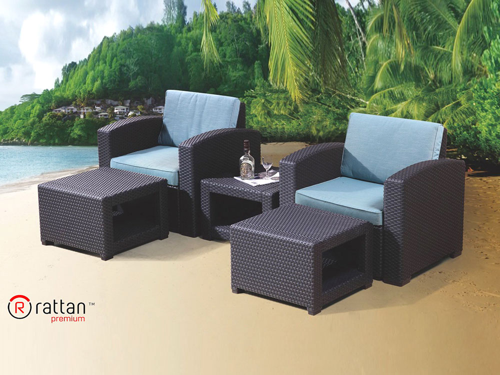 Мебель с имитацией под ротанг. Долговечная и не требует особого ухода, достаточно протереть влажной тряпочкой и оно снова как новое! А мягкие подушки идущие в комплекте не оставят ни одного человека равнодушным к этому набору.