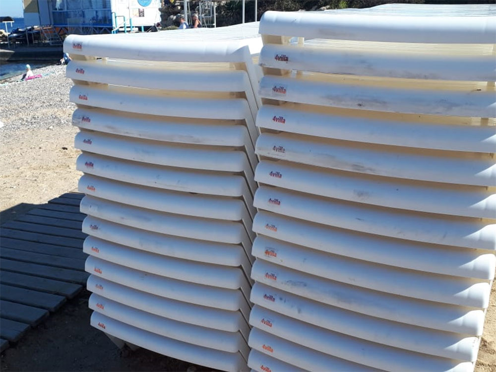 Сверхпрочные пластиковые шезлонги 4VILLA были поставлены на самый лучший пляж города Севастополя (Отель Аквамарин) в феврале 2018 года. По итогу первого сезона ВСЕ шезлонги остались целыми! Ни одного повреждения, которое могло бы помешать использовать шезлонг в следующем сезоне.