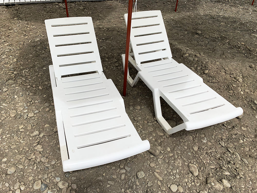 Универсальный шезлонг с тщательно продуманным дизайном, который подходит для размещения как любом виде покрытия пляжей. Устойчивы и не ломки, не проваливаются и не деформируются от неровной поверхности. На пляжах с покрытием пляжа галькой, шезлонги показали себя устойчивыми и не изменяющими своего первозданного вида. На песчаных пляжах они не проваливаются в песок и не застревают в нем.
