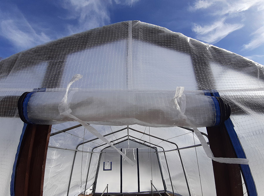 Американская компания ShelterLogic запретила экспорт в Россию своей продукции. А за 7-10 лет тенты из светорассеивающего трехслойного полотна износились. Поэтому мы разработали в качестве импортозамещения чехлы из новой усиленной армированной пленки с клеткой из лески в 1 см и максимальной плотностью 300 мкм.